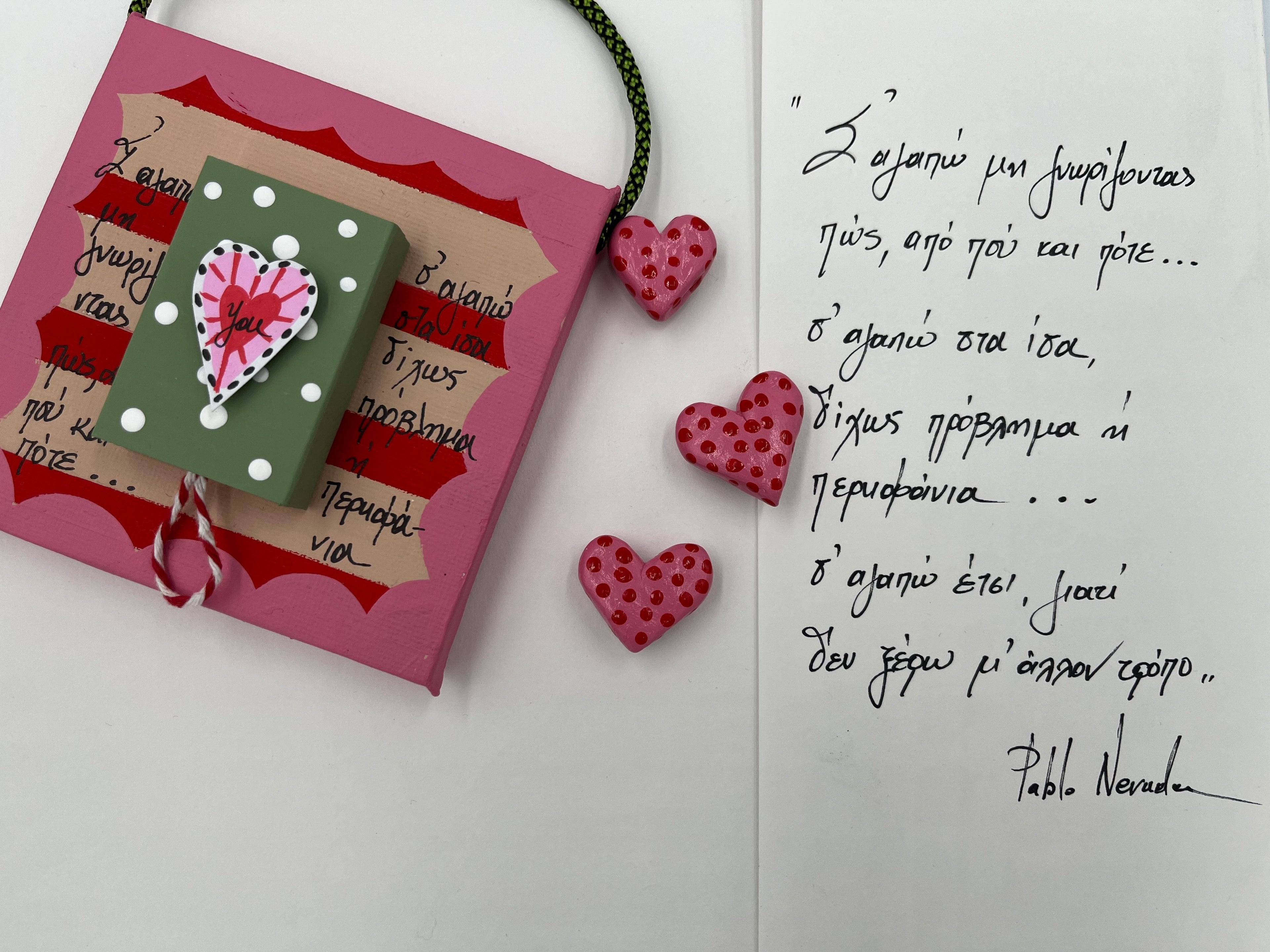 Καδράκι Ζωγραφισμένο στο Χέρι με Ποίημα και Μαγνητάκι Καρδιά