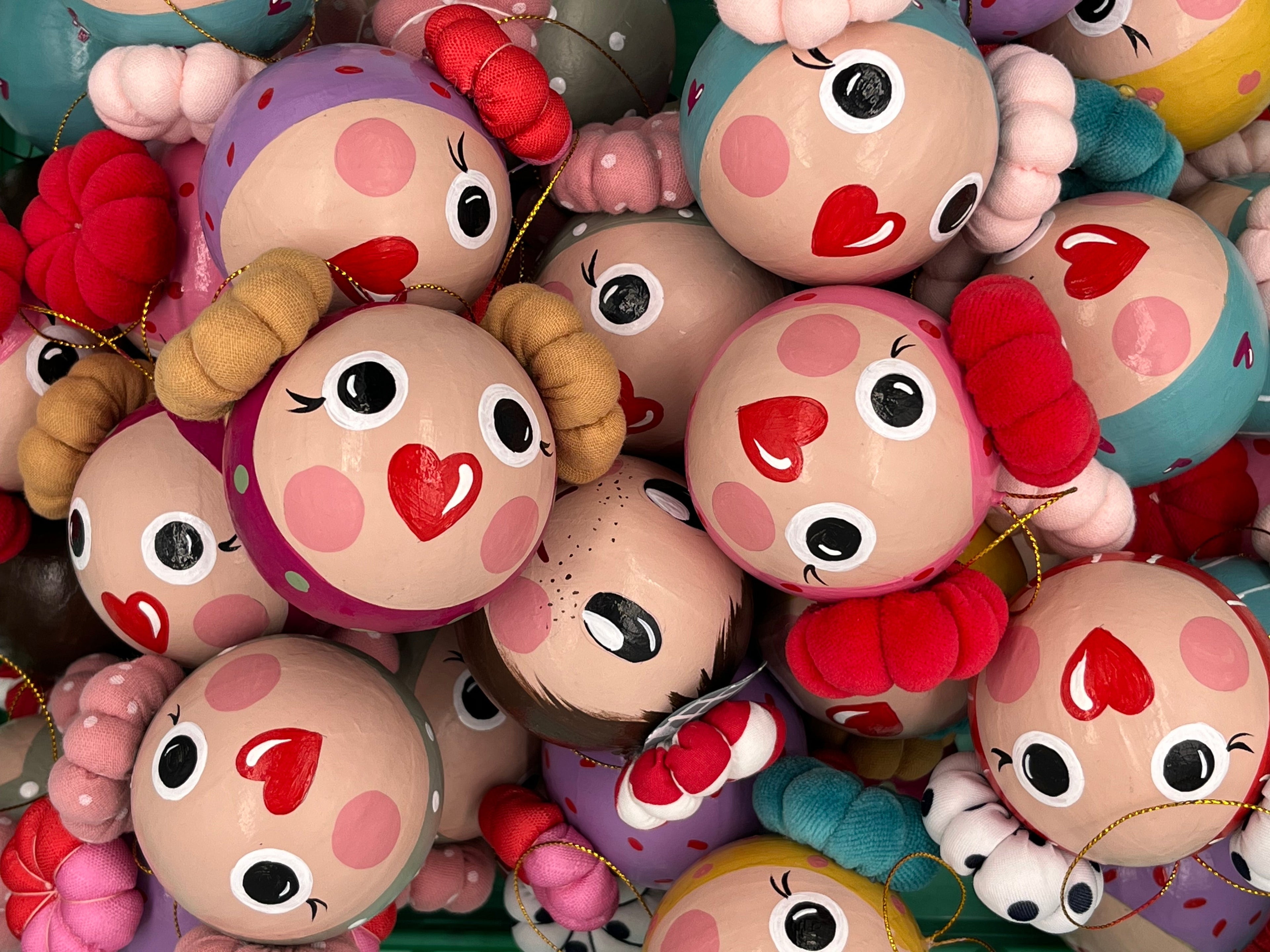 ΕΛΕΟΝΩΡΑ Χειροποίητη Μπάλα Στολισμού Κοριτσάκι με Υφασμάτινα Κοτσιδάκια
