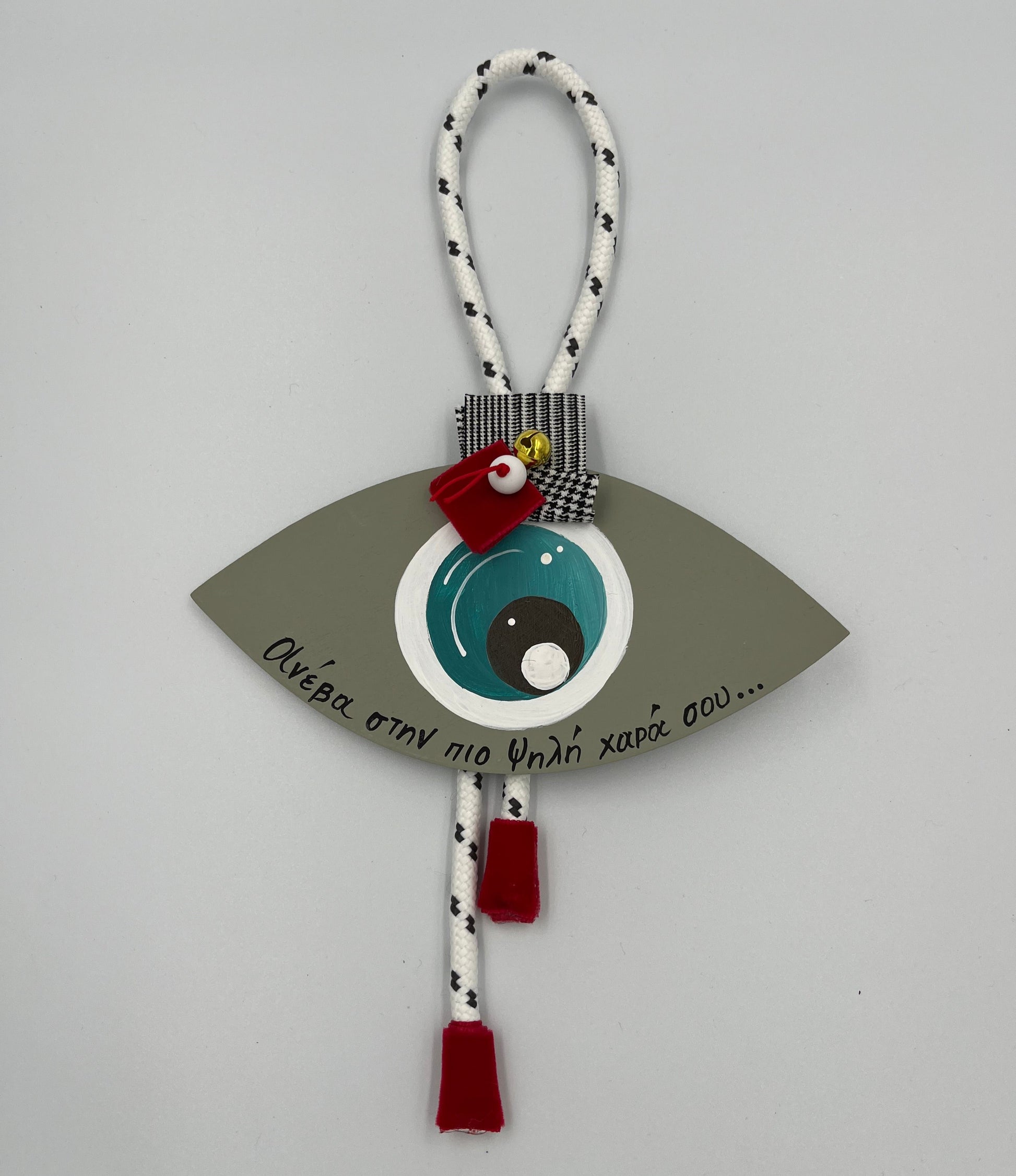 Κρεμαστό Ξύλινο Χειροποίητο Μάτι Κόκκινο Χακί