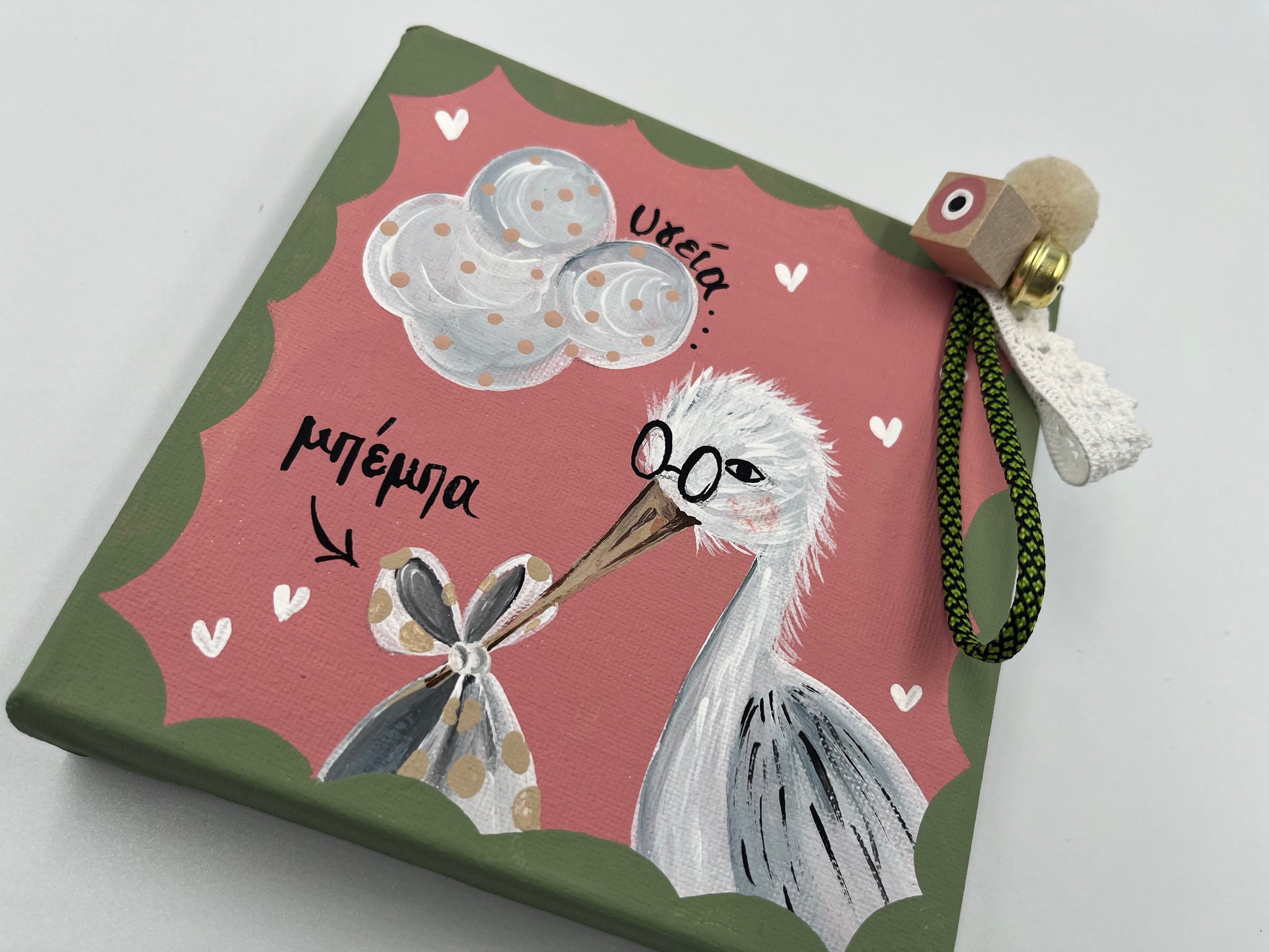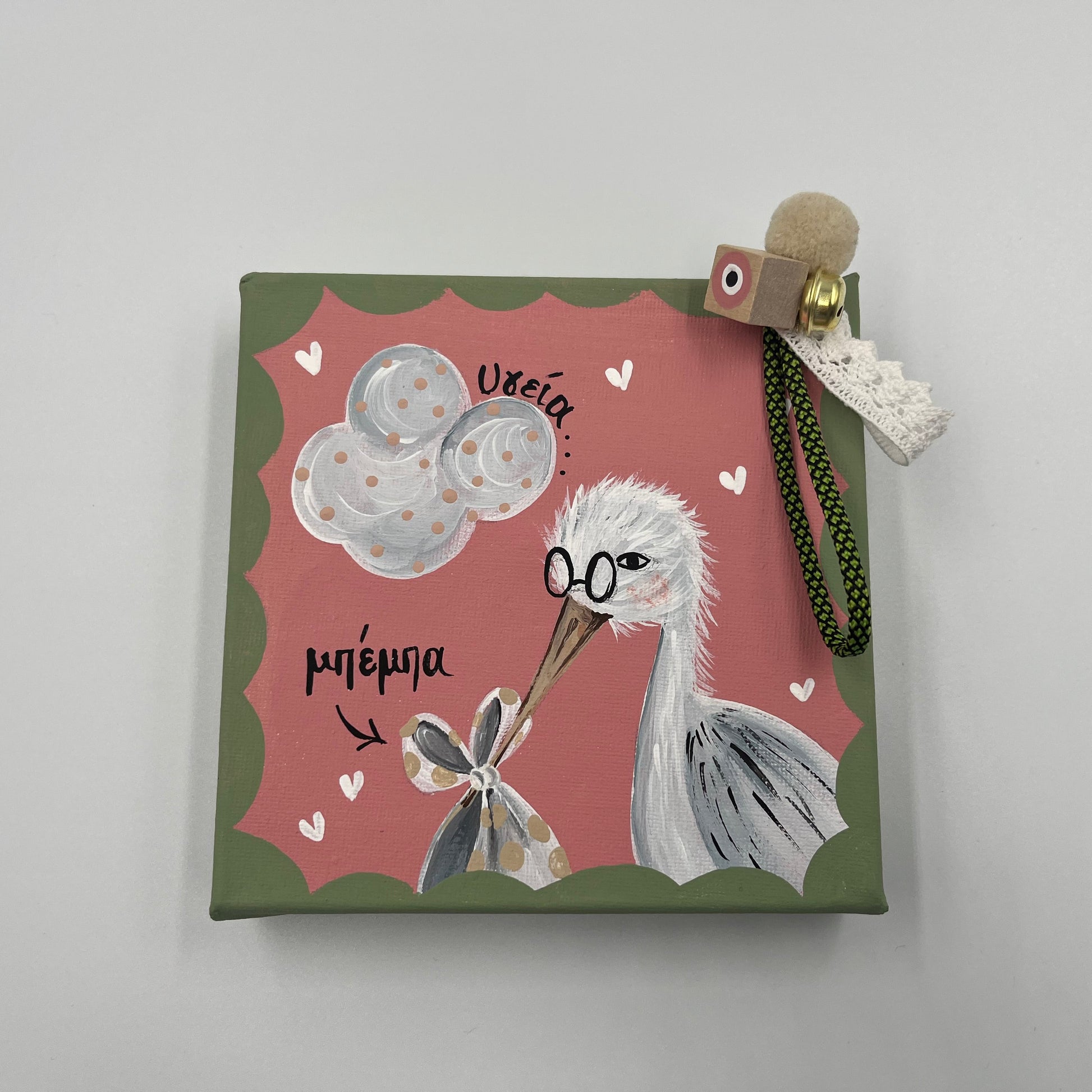 Χειροποίητο 3D Τελάρο για Νεογέννητο Kοριτσάκι με Πελαργό