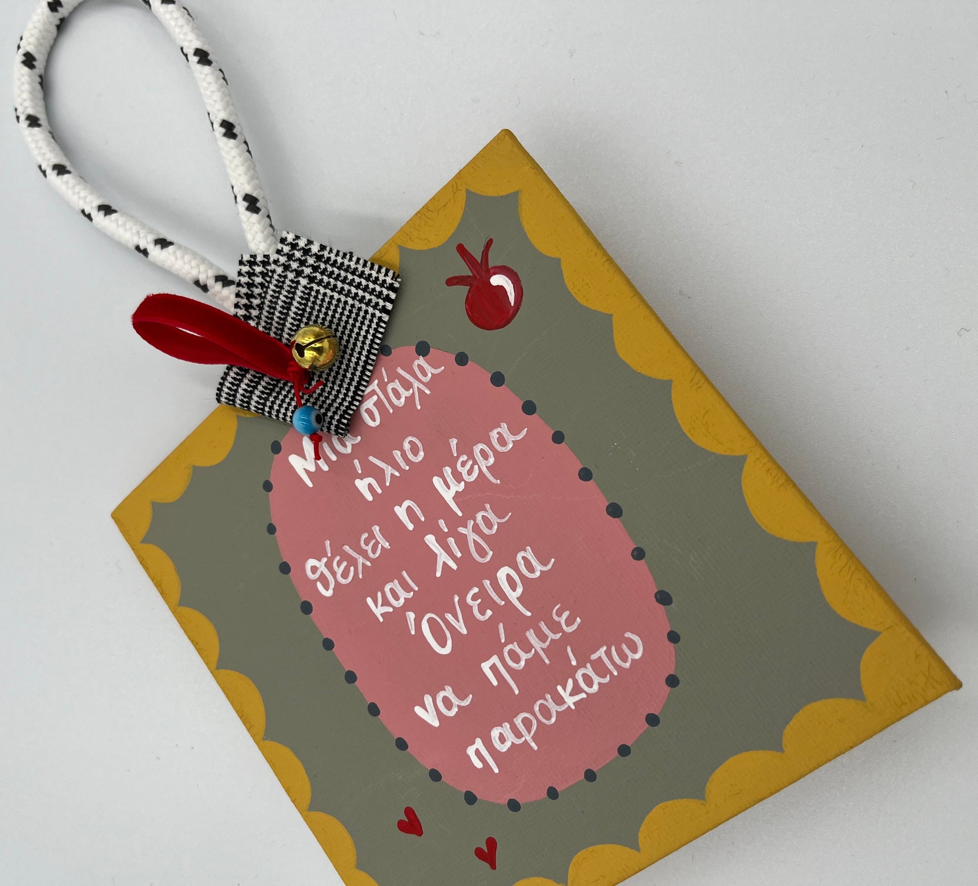 Ζωγραφισμένο στο Χέρι: Κάθε καδράκι είναι χειροποίητο και ζωγραφισμένο στο χέρι, με ένα μοναδικό σλόγκαν που προσθέτει μια προσωπική αίσθηση.