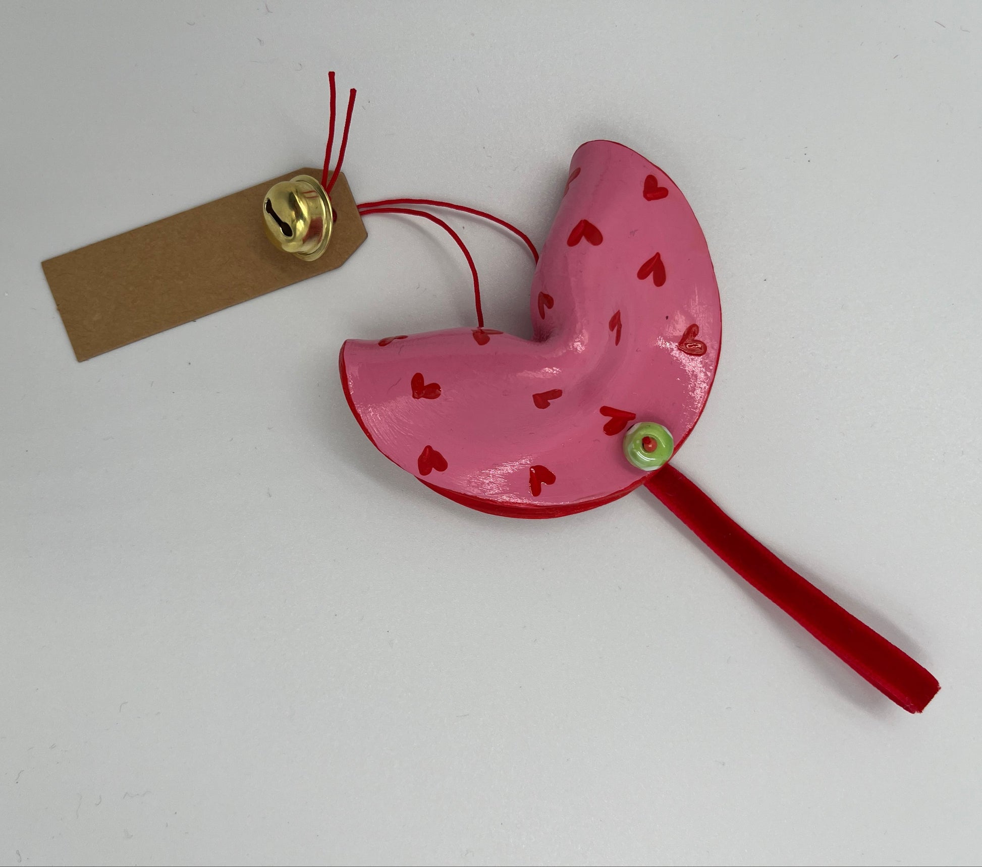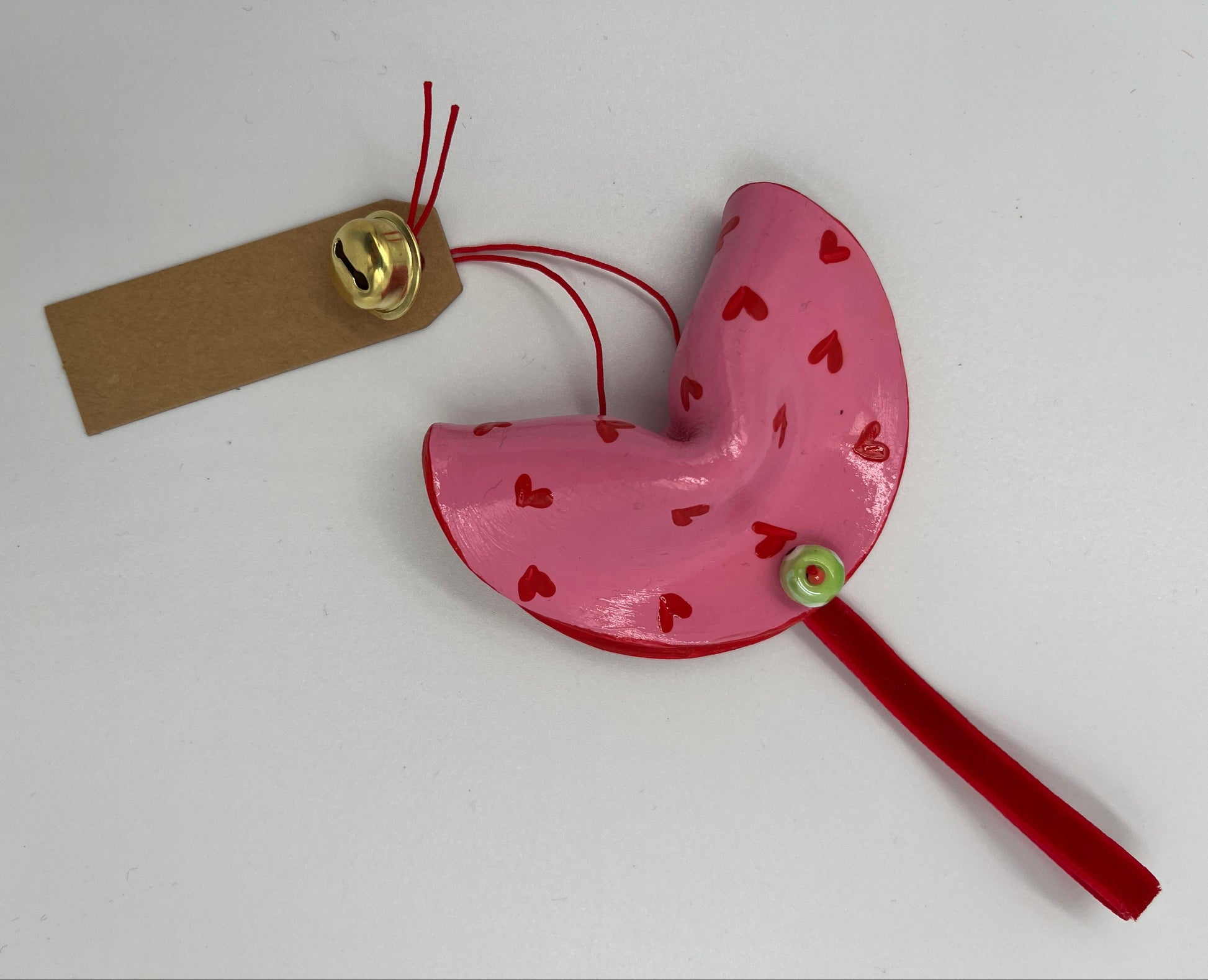 Κρεμαστό Fortune Cookie Ροζ με Καρδιές