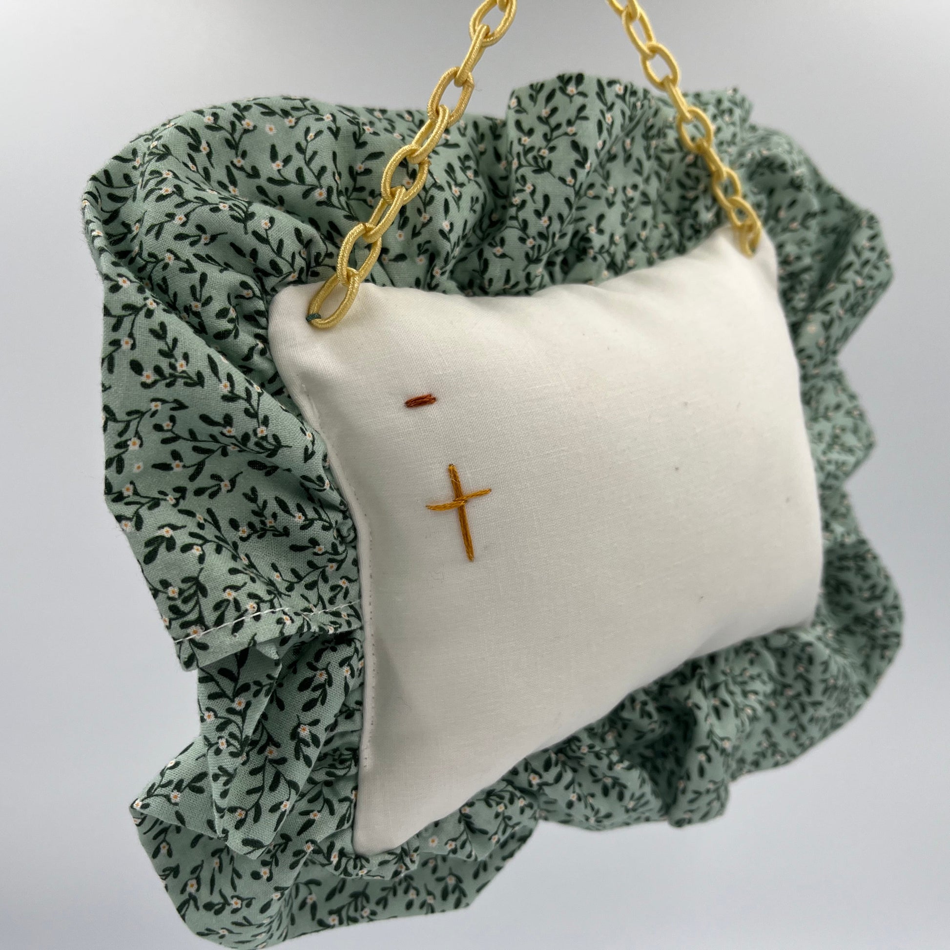 Κρεμαστό Μαξιλαράκι με Βολάν και Κέντημα Αντιβασκανικό