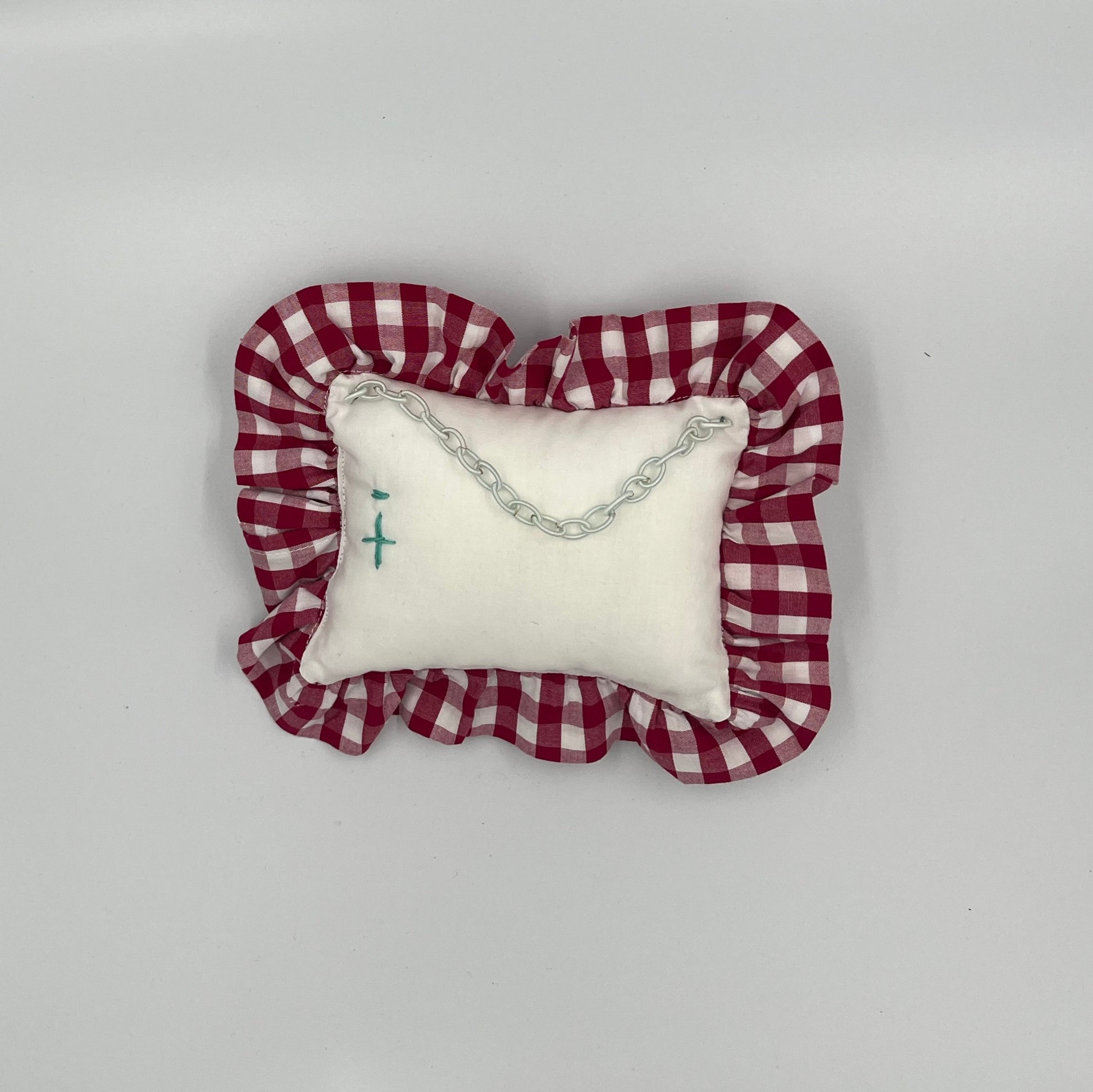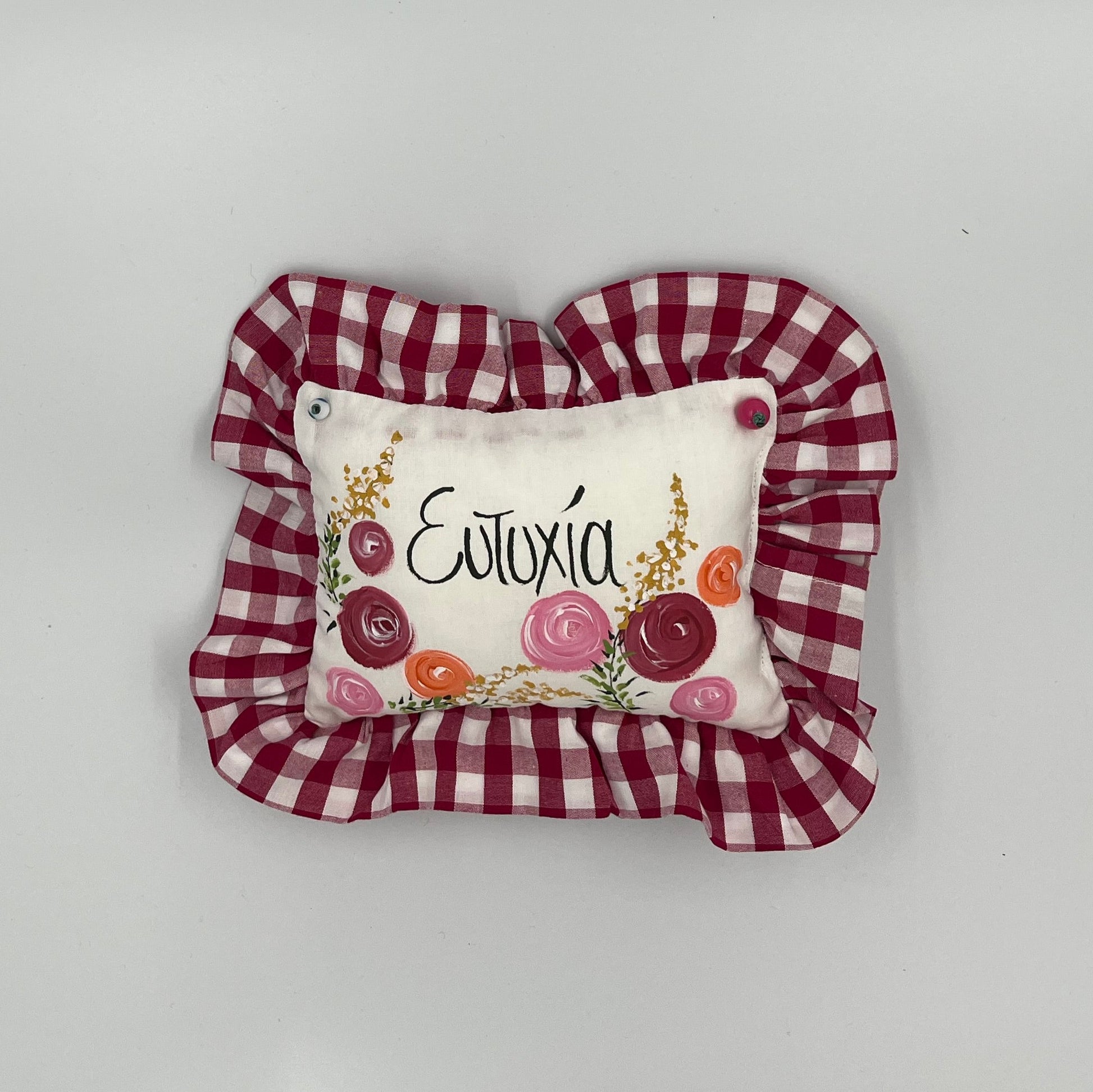 Κρεμαστό Μαξιλαράκι με Βολάν Ευτυχία Κόκκινο Καρώ
