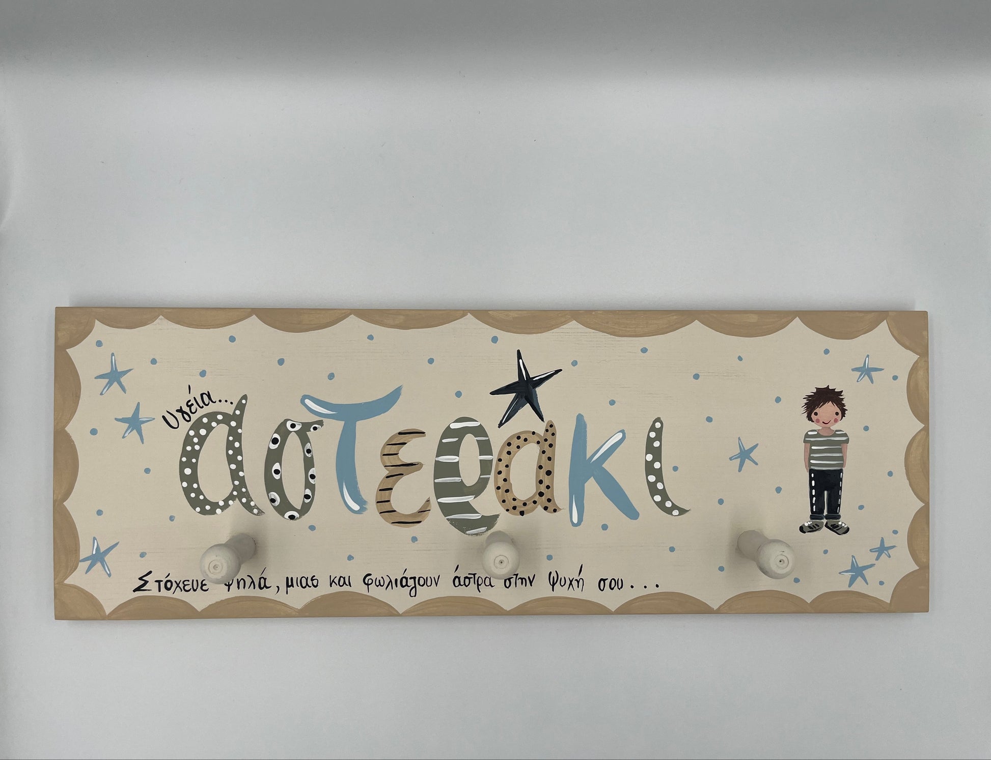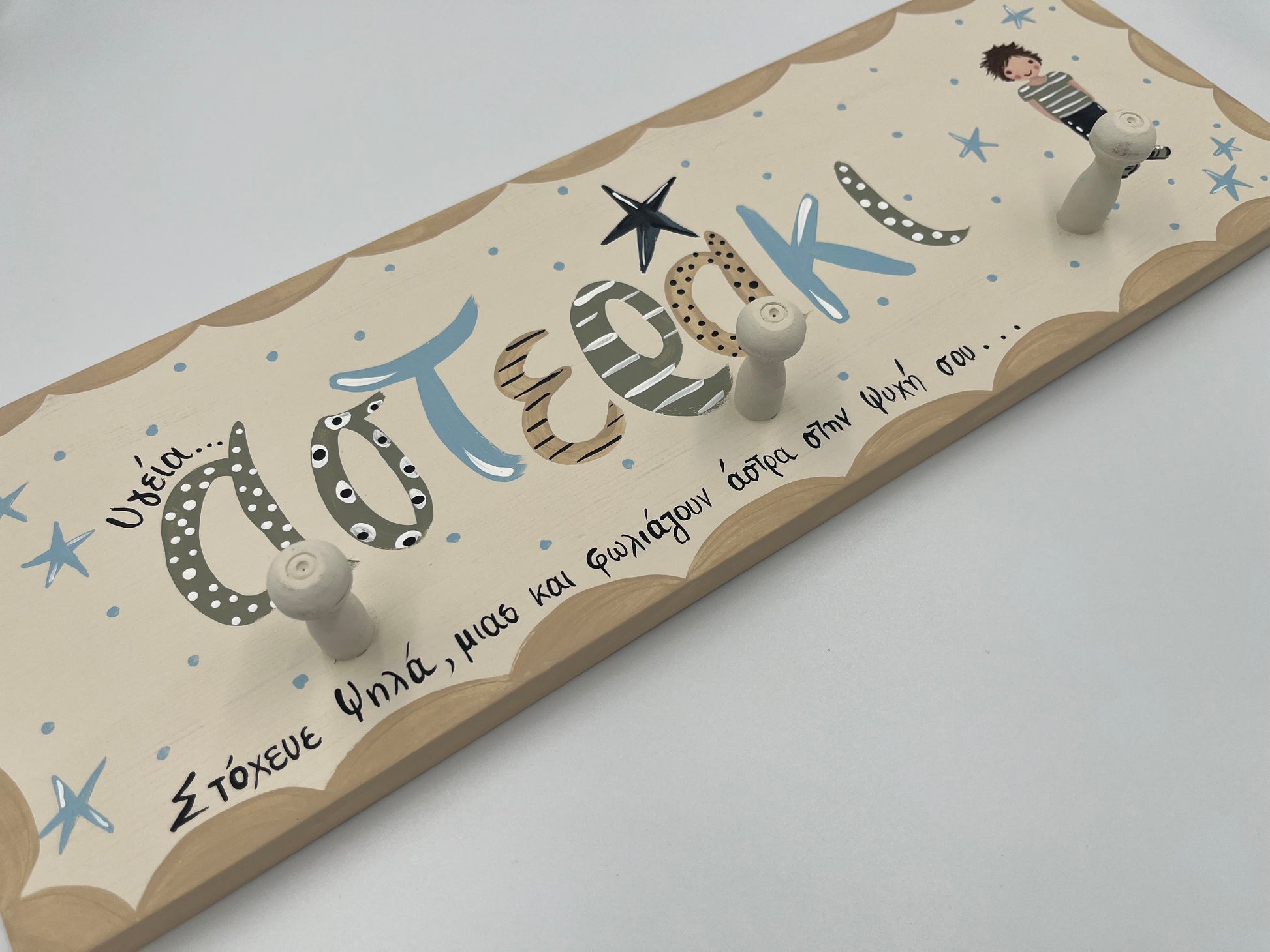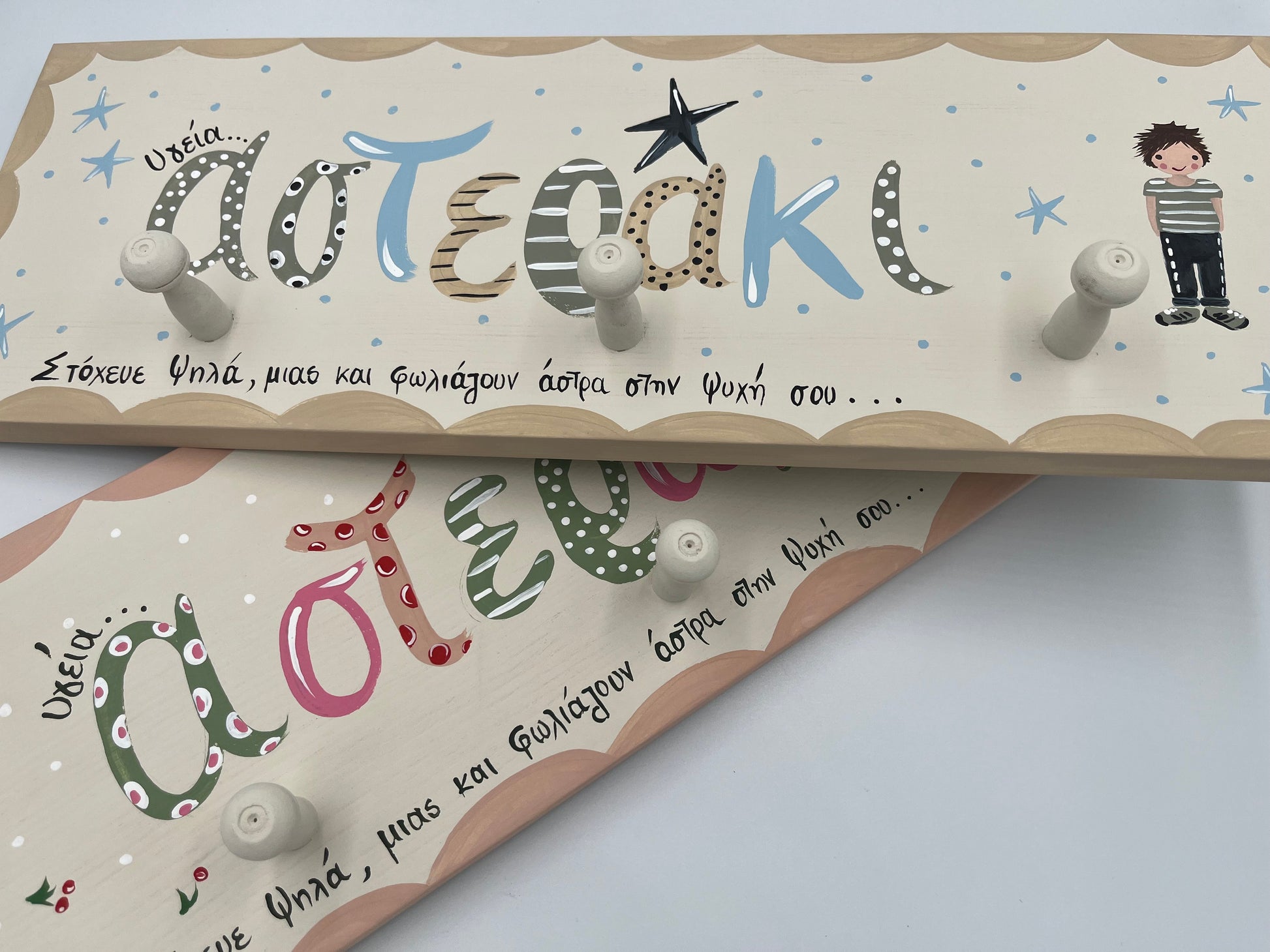 Παιδική Χειροποίητη Κρεμάστρα – 3 Θέσεων Αστεράκι ή Όνομα