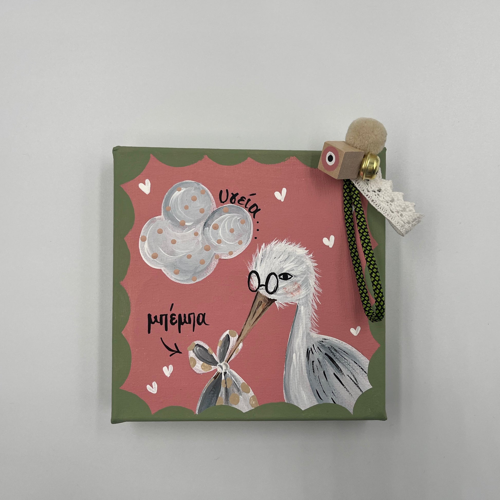 Χειροποίητο 3D Τελάρο για Νεογέννητο Kοριτσάκι με Πελαργό