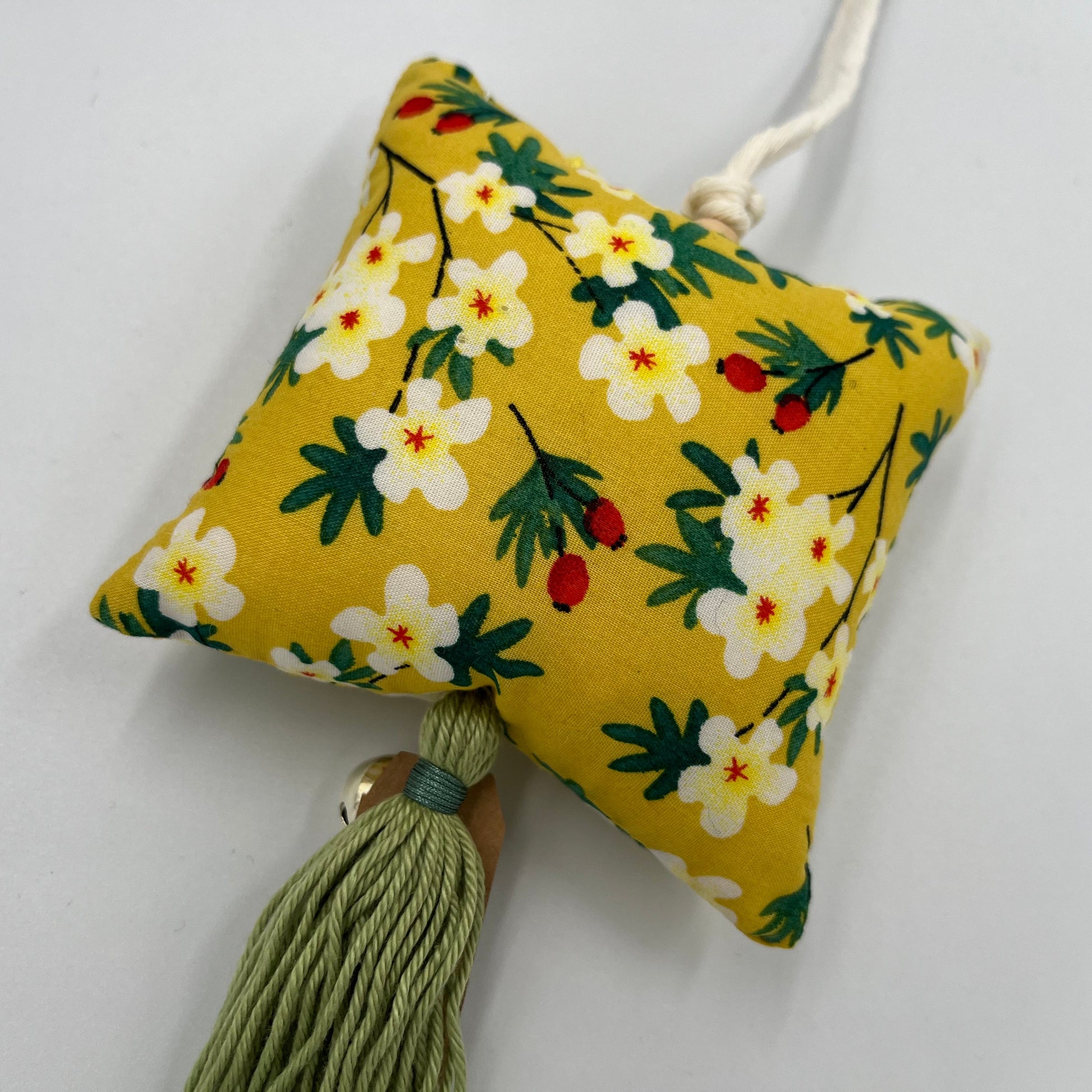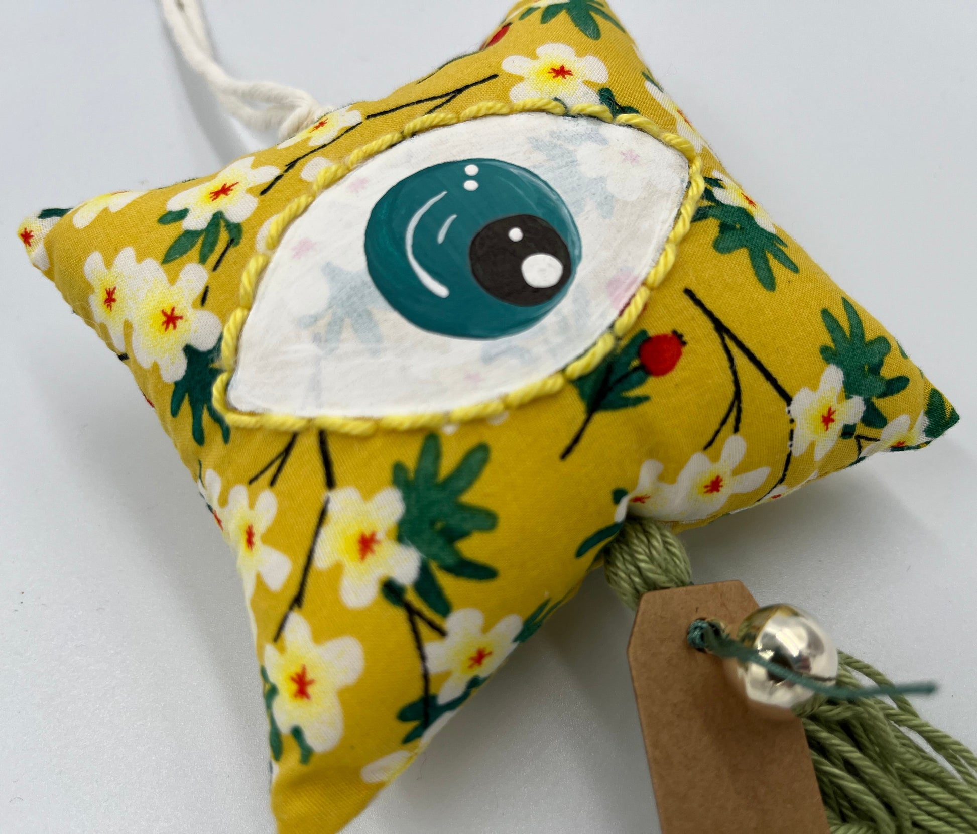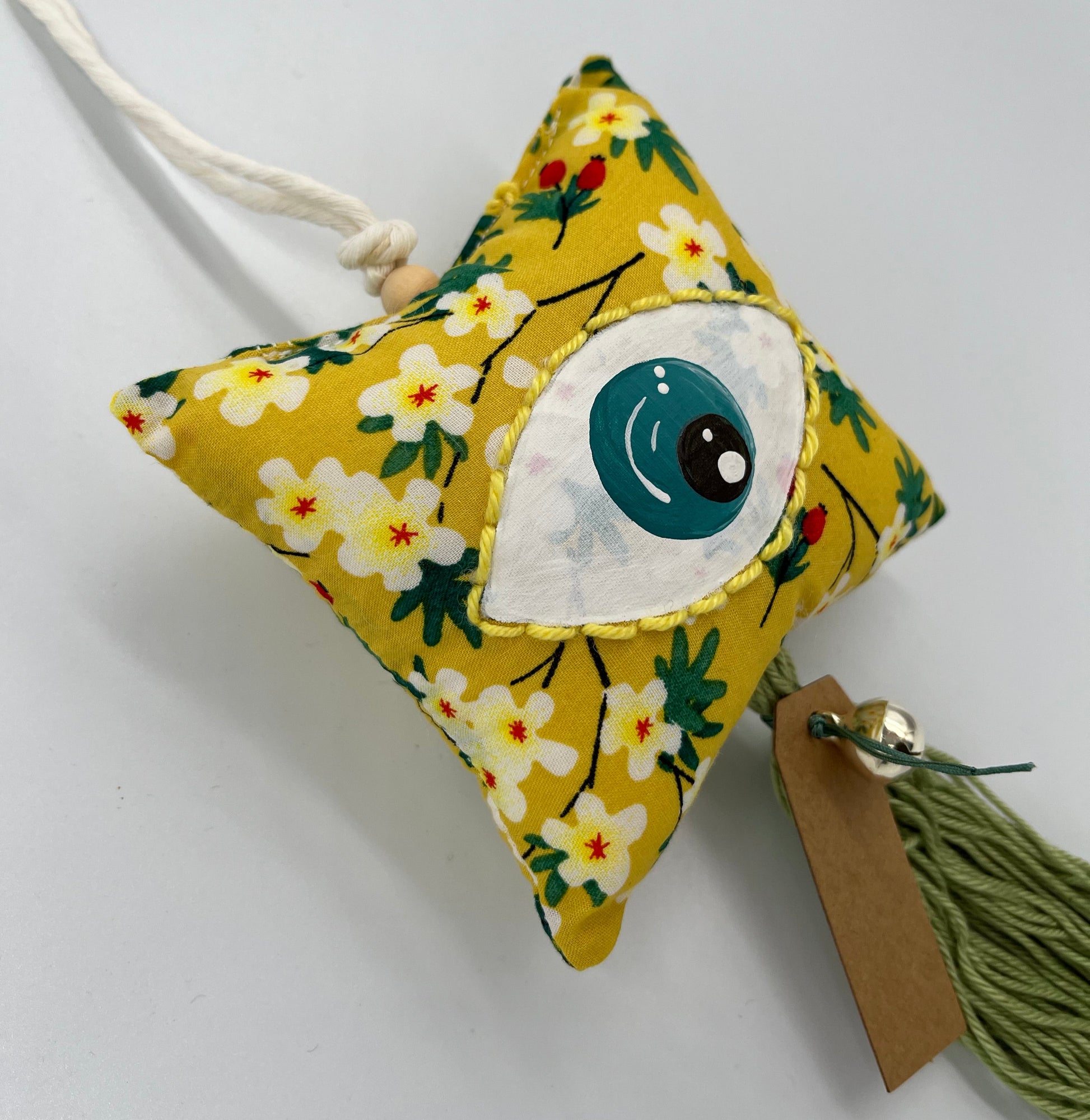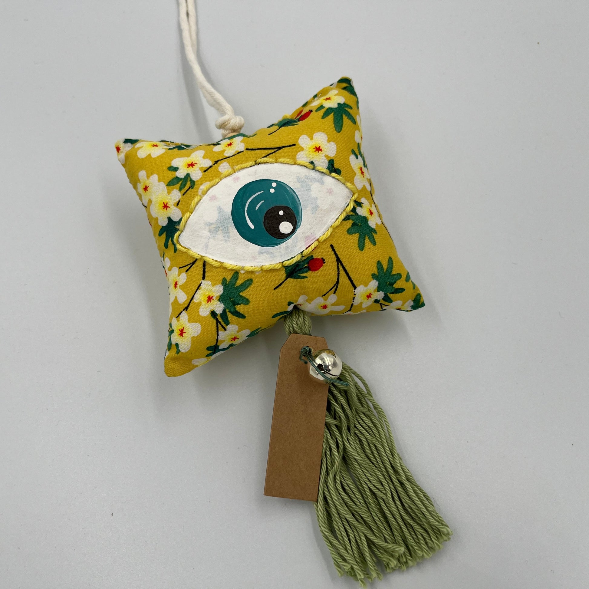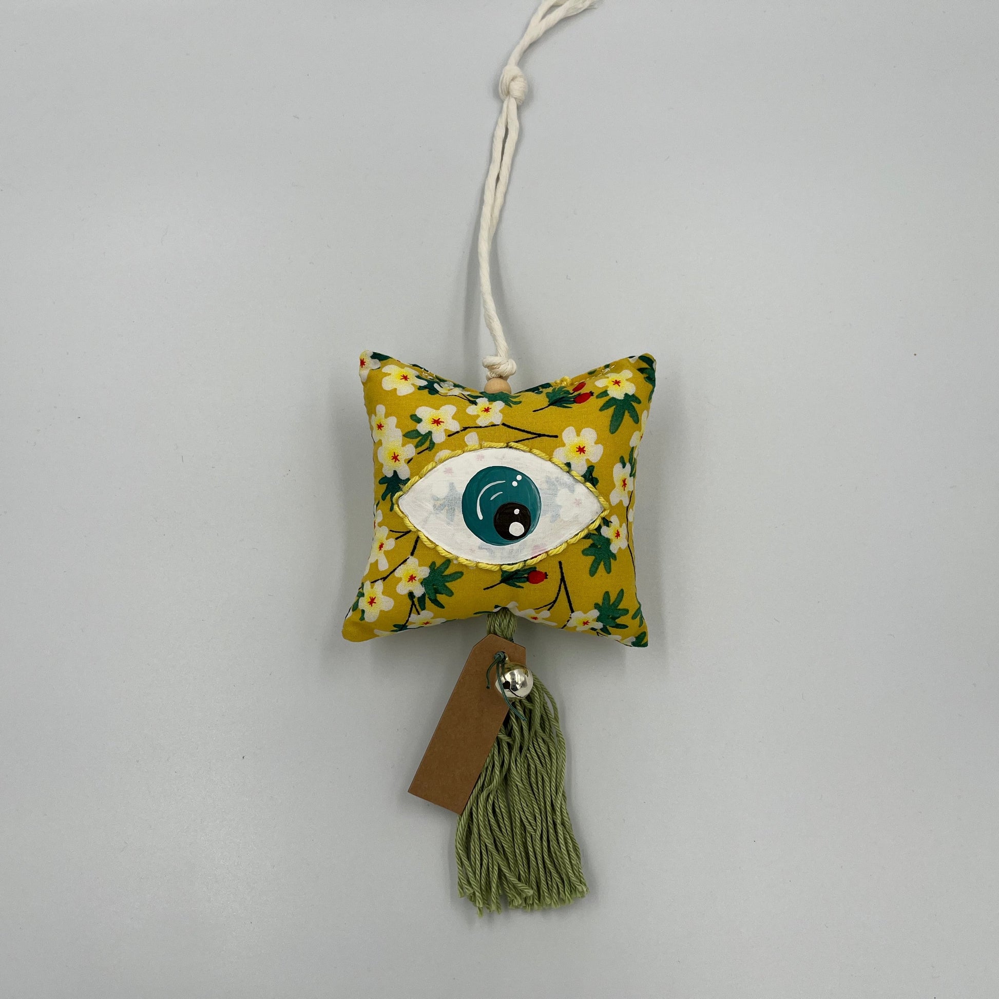 Kρεμαστό Μαξιλαράκι με Ματάκι και Φουντίτσα Κίτρινο με Λουλούδια